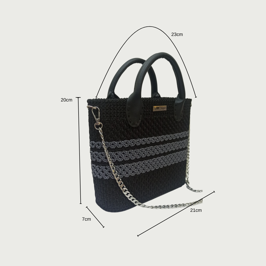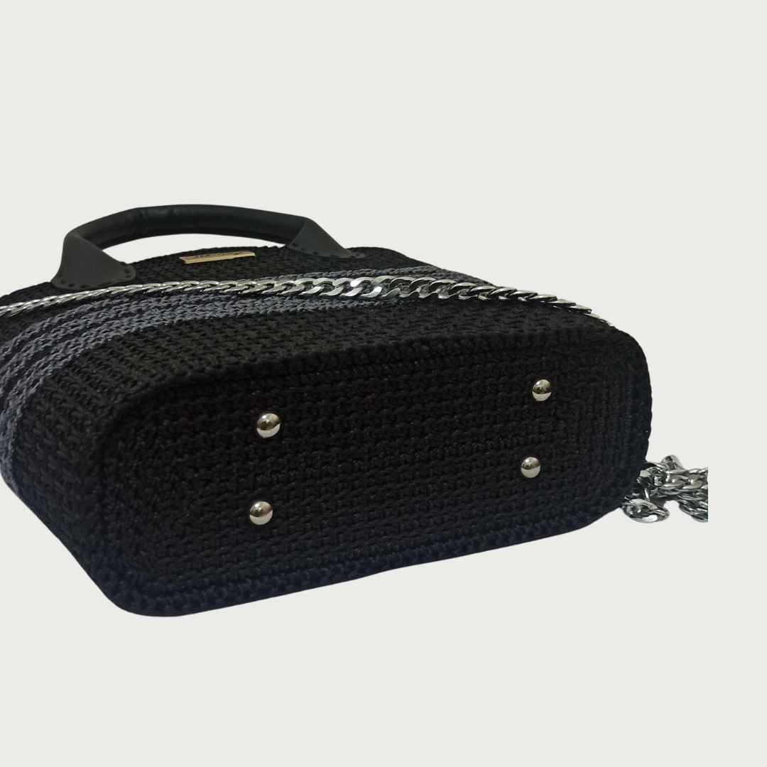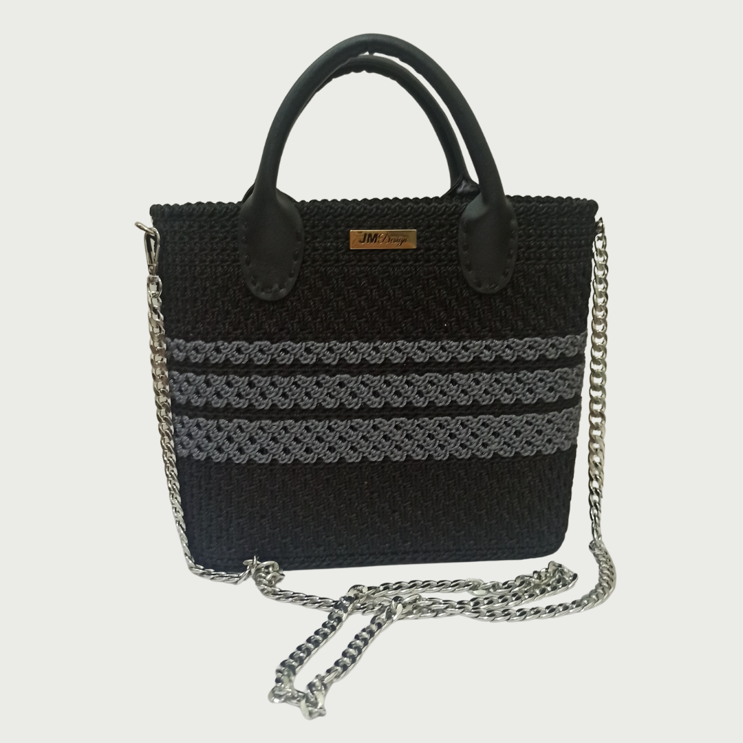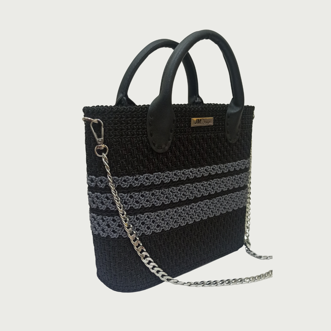 Beg Tangan Crochet Nylon Premium – Elegant Hitam & Kelabu